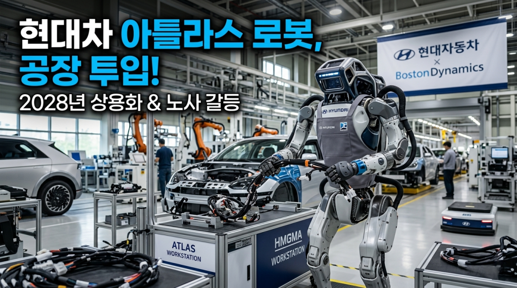 - 핵심 요약: 현대차그룹 산하 보스턴 다이내믹스의 전동식 양산형 아틀라스 로봇이 2028년 미국 신공장 투입을 시작으로 상용화됩니다. AI 기술 결합으로 기업 가치는 30조 원으로 폭등했으나, 비용 절감 효과로 인한 대규모 일자리 대체 우려 탓에 노조와 심각한 갈등을 겪고 있으며, 이는 올해 단체협약의 최대 쟁점이 될 전망입니다.